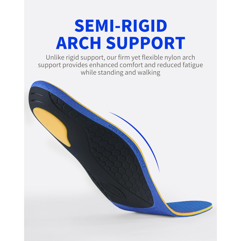 - Semi-Rigid Arch Support: Provides the perfect balance between flexibility and firmness. This arch support design allows natural foot movement while offering firm support to reduce fatigue, prevent overpronation, alleviate plantar fasciitis, and arch pain, and improve posture during daily activities. Ideal for individuals who need both comfort and corrective foot support during their daily routines