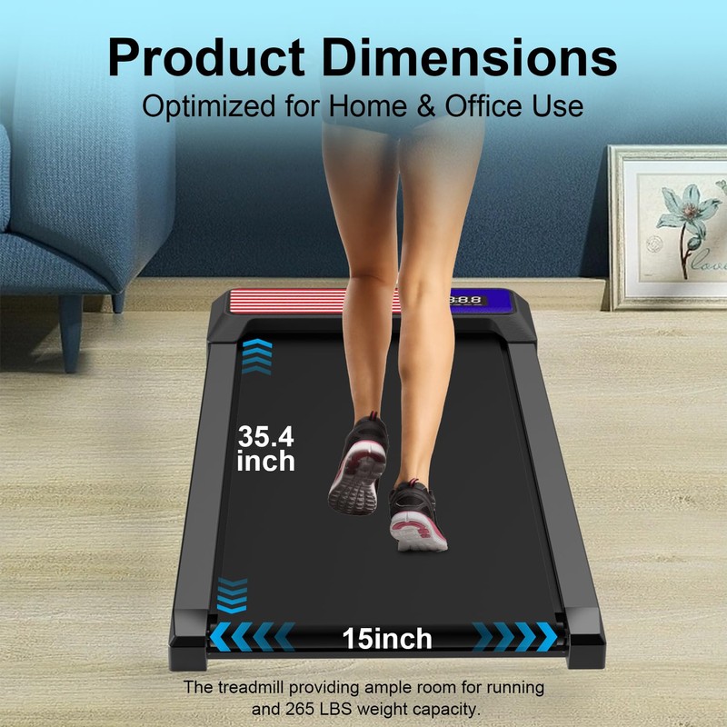 - 【Powerful 2.5HP Motor & Adjustable 5% Incline for a Better Workout】This under desk treadmill with incline is equipped with a powerful 2.5HP motor and supports up to 265 lbs, providing a stable and effective workout experience. The 5% incline enhances calorie burn and improves workout efficiency, making it an excellent choice for home or office fitness