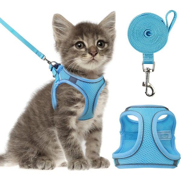Walking pet Harness and Leash Set: Step in Vest Harness,Reflective Bands, Soft No Pull Adjustable Breathable Mesh Leash and Harness Vest Belt for Puppy,Small,Medium Dogs and Cats(.XS -Small, Blue)