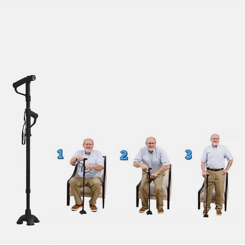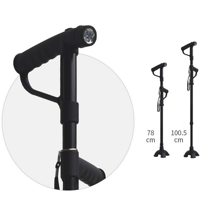 1、Main Application: This stick is designed for helping elders get up, defend the waist and legs of the elderly, and the handle can be moved for better experience. 2、Easy Carrying: This stick adopts folding design, allowing easy carrying and convenient using. 3、Aluminum Alloy Material: Made of aluminum alloy, this stick is wear resistance, anti slip, light, stable, suitable for long term use. 4、With LED Light: Equipped with a LED light, which can also be moved up and down to adjust the light angle far and near, this stick is able to help the elder in night walking. 5、4 Feet Available: Equipped with 1 stick 4 support feet in total, this stick is very stable, no need worrying about the crutches slipping or shifting when gets up, use it with confidence!