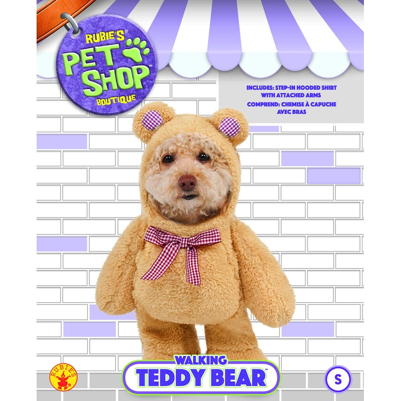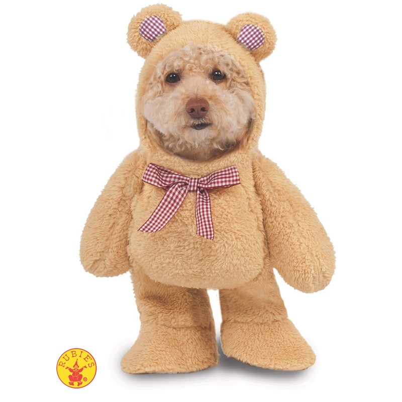 Soft Teddy Bear costume is a step-in hoodie with padded “false” arms and attached hood that includes bear ears with gingham lining. IMPORTANT: Read reviews, size chart, and Q & A BEFORE purchase; not all styles fit every dog breed or pet. This costume is suggested for dogs with short to medium legs. Fun way to add your pet to a family costume look, including Goldilocks or Storybook theme. Coordinate with your pet with costumes available in baby/toddler, child and adult sizes for everyone in the family to enjoy! Rubie’s is the world’s largest designer and manufacturer of costumes, of course they’d remember your pet! The fun starts here! Family-owned, family- focused and based in New York since 1950. As the world's largest designer and manufacturer of costumes Rubie's brings fun and fantasy to dress-up. Offering everything from full mascot suits to masks and wigs, from deluxe licensed costumes to simple starter pieces, from costume shoes to character make-up, and so much more. Rubie's promotes safety in dress-up, so you can relax and have a great time while looking the part. Look to Rubie's for every costume occasion and season: Halloween, Christmas, Mardi Gras, Easter, and all occasions in-between