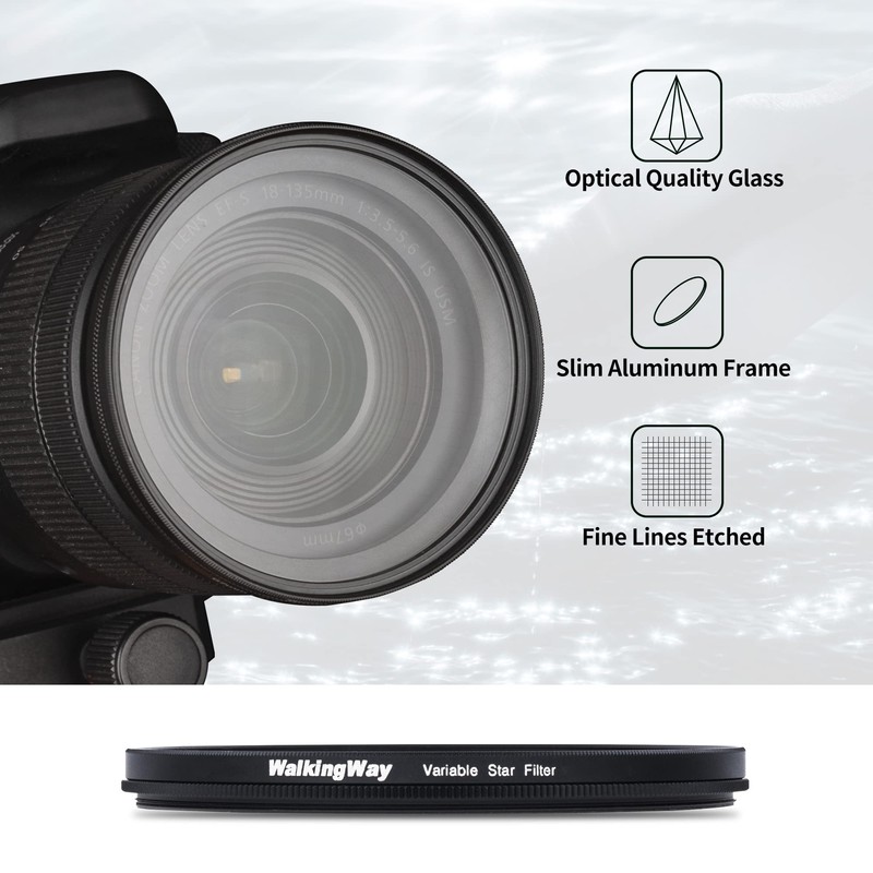Walking Way 6 Points Sparkle Star Filter 62 MM Variable Twinkle Effect Sparkle Star Filter - Cross-screen Filter - Slim Sparkling Effect Lens Filter