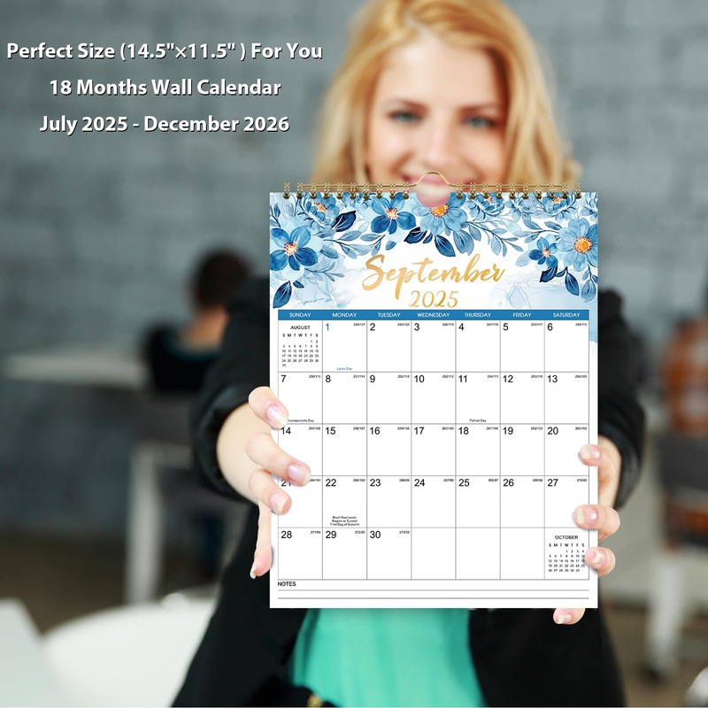 - 🌷Plan Effectively - 2025-2026 wall calendar covers from 18 months from July 2025 to December 2026, the size is 11.4 x 14.6 inches. Large daily blocks help to jot down appointments and dedicated section for To Do and Notes allow you to efficiently plan the whole month.