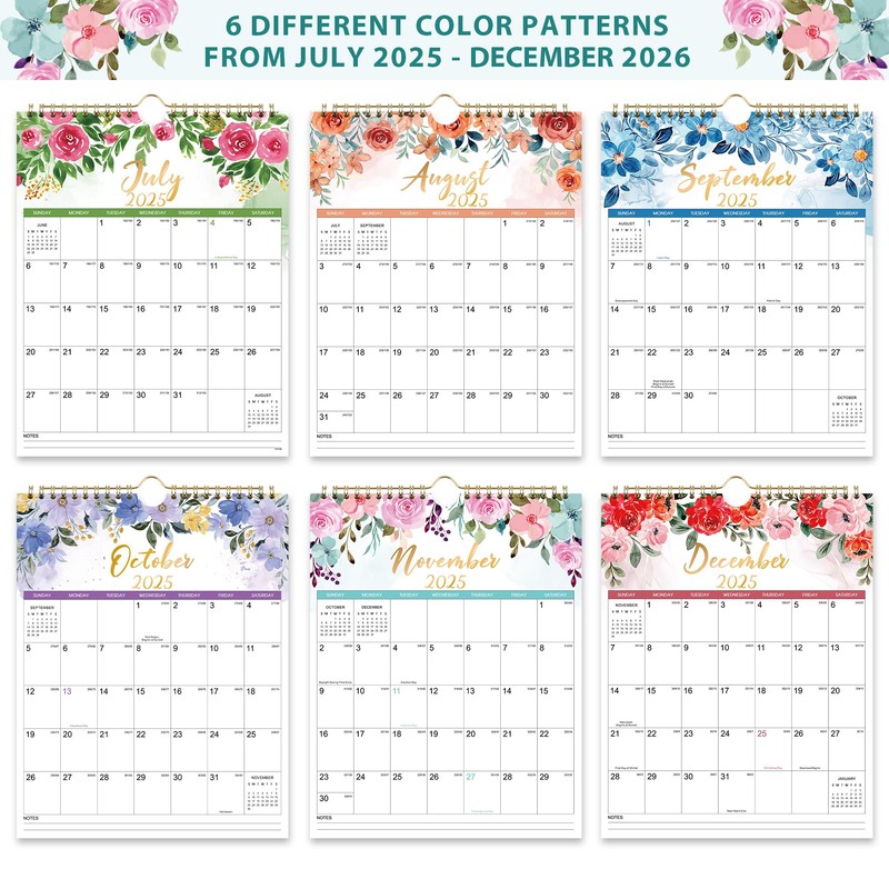 - 🌷Stylish Design - 6 different flowers patterns for 12 months. The stylish flower design makes this wallcalendar 2025-2026 more fashionable charm. Unique patterns bring you joy and allow you to organize your month in a vibrant and enjoyable way.