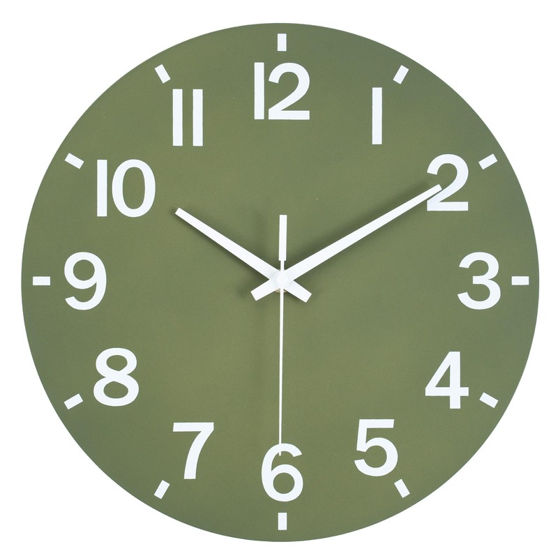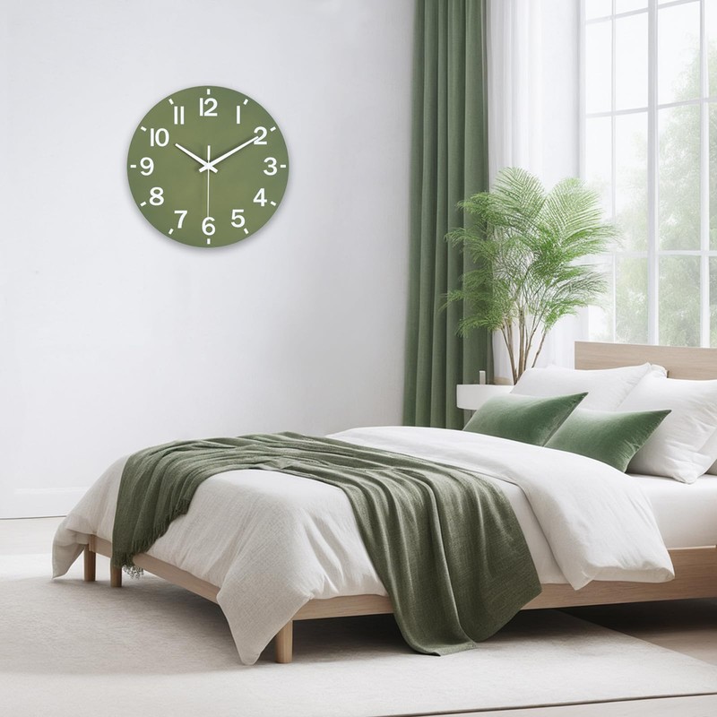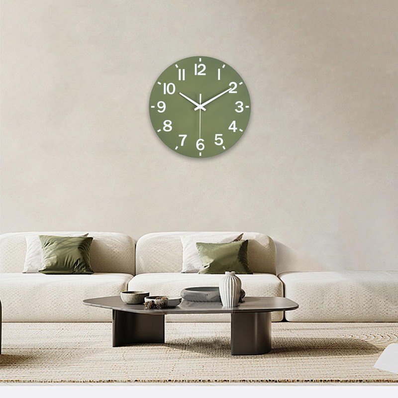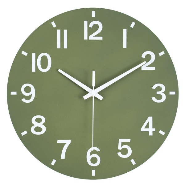 Wall Clock, Stylish, Silent, Wall Clock, Continuous Second Hand, Woodgrain Dial, Antique Scandinavia, Stylish, Cute (Moss Green)