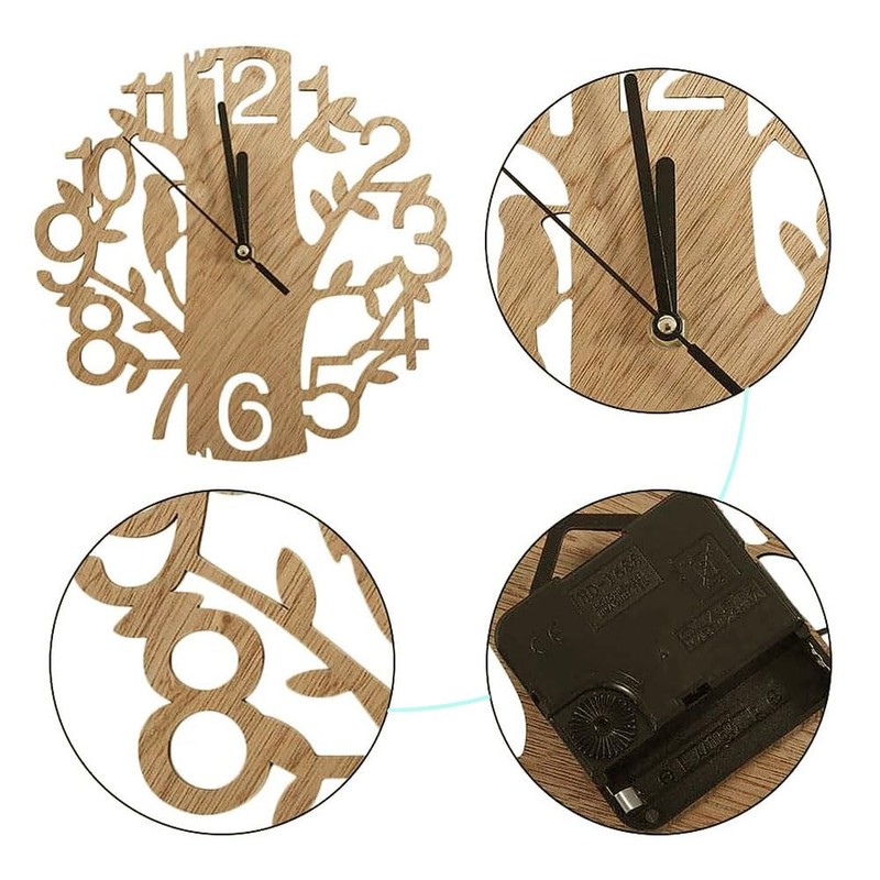 - Design: A combination of birds and trees: A cute wall clock that resembles cutouts, and has a natural atmosphere