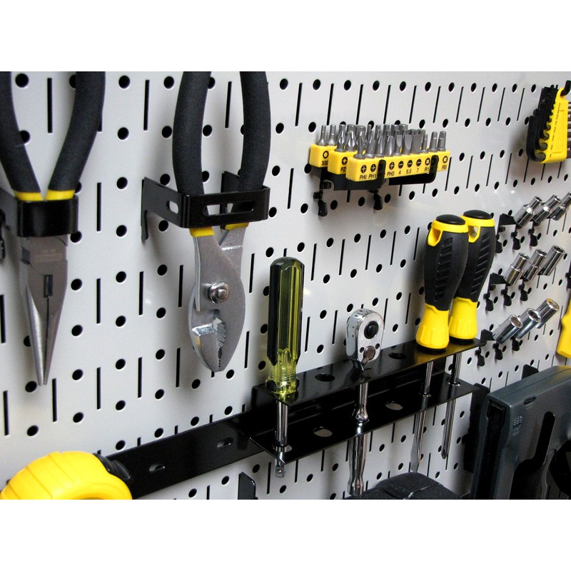 - ACCEPTS ROUND PEGS AND SLOTTED PEGS: Accepts 1/4-In Round Pegs and All Wall Control Brand Peg Hooks.