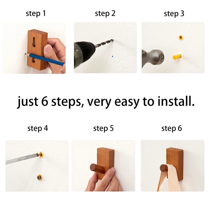 • Creative Design: The top of wooden wall hook is inclined upward, so there is no need to worry about the objects falling off the backpack hanger; Drill hole at the wall end can improve its ability to withstand and helps the wooden hooks completely cling to the wall, providing stable support for hanging objects.