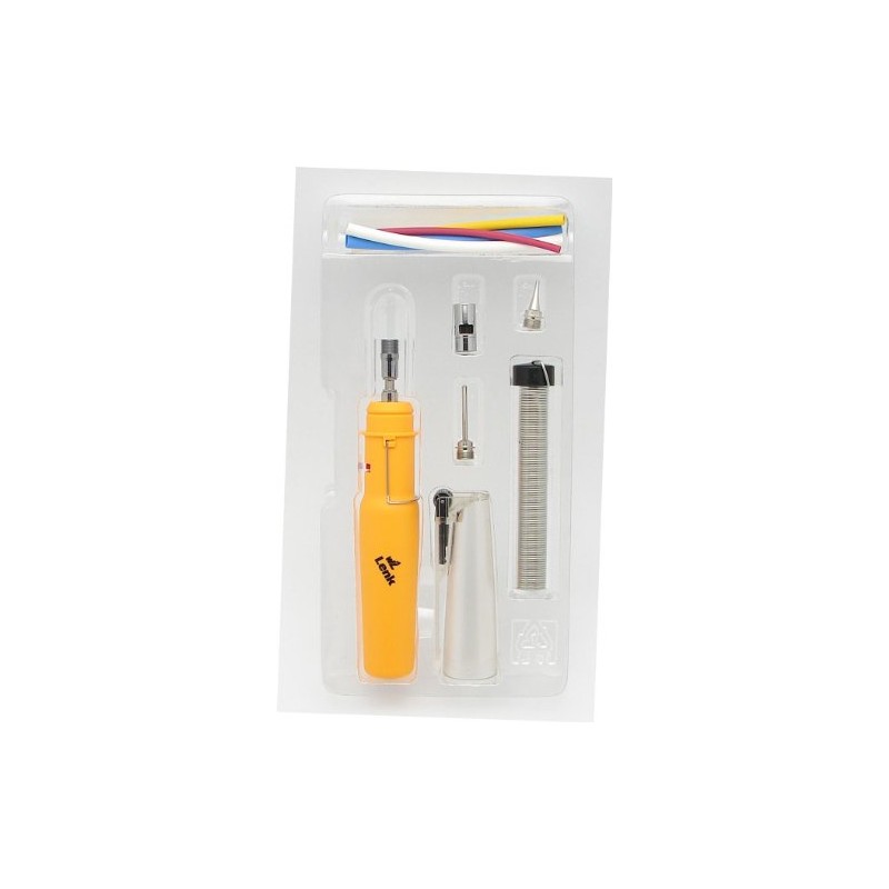 The Wall Lenk LSP-60K is a 4-in-1 SolderPro 60 is first of a new generation of pocket sized butane soldering irons. This iron is a standard manual ignition tool for engineers and technicians. The kit contains butane powered heat tool, cap with manual striker, heat deflecting shield, blow torch tip, heat gun tip, pointed soldering tip, hot knife tip and blow molded storage case for easy storage.