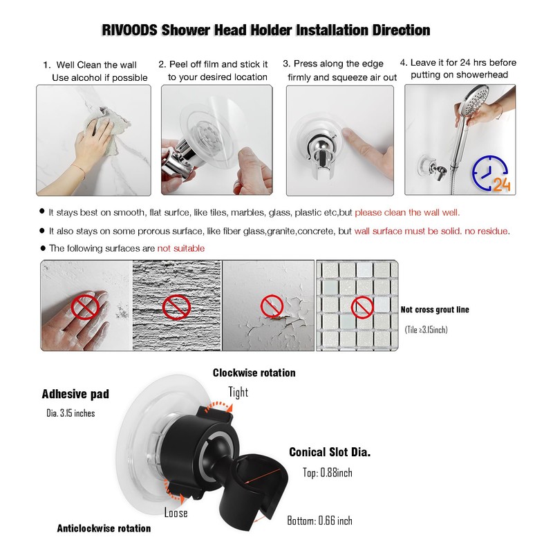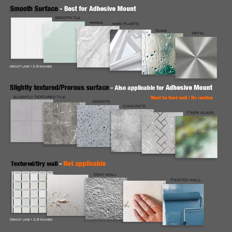- INSTALL IN A BREEZE: Our Shower Holder Comes With A Peel-and-stick Installation, So Simple To Intall Within Seconds, It Stays Best On The Flat, Smooth Surface Like Tiles, Glass, Marble Etc, It Can Also Be Attached Onto The Slightly Textured Surface Like Fiber Glass, Metal, Plastic, Wood,granite Etc.(Please Double Check Your Desired Area Before Installation, It Is Tiny But So Much Strong Than You Expected)