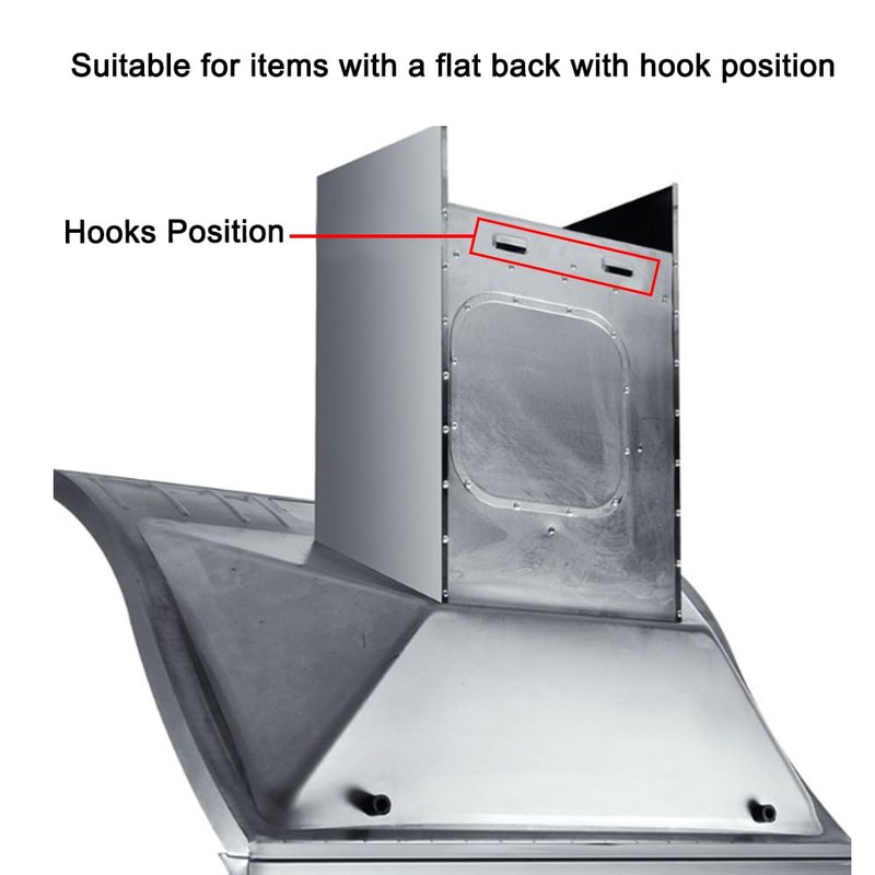 - HIDDEN BRACKET This solid steel wall mount is designed to hide the mounting hooks in the wall while securely hanging the fan or cooker hood. It is not only aesthetically pleasing, but also space-saving.