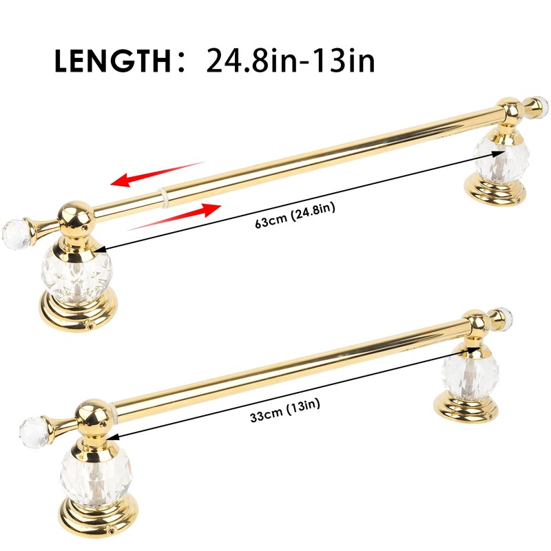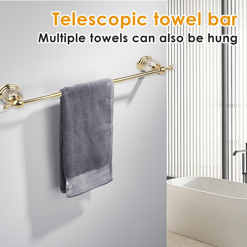 Wall Mounted Polished Gold Towel Bar,Crystal Towel Holder Adjustable Towel Rack Expandable Rail Bathroom Accessories
