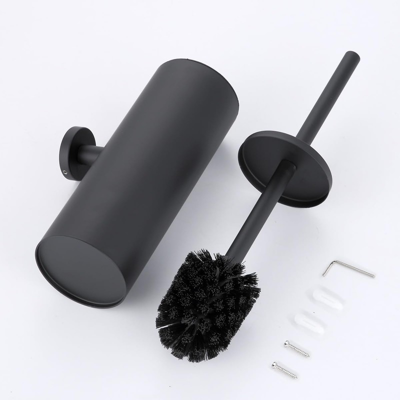 Wall-Mounted Toilet Brush Holder Set (Black)