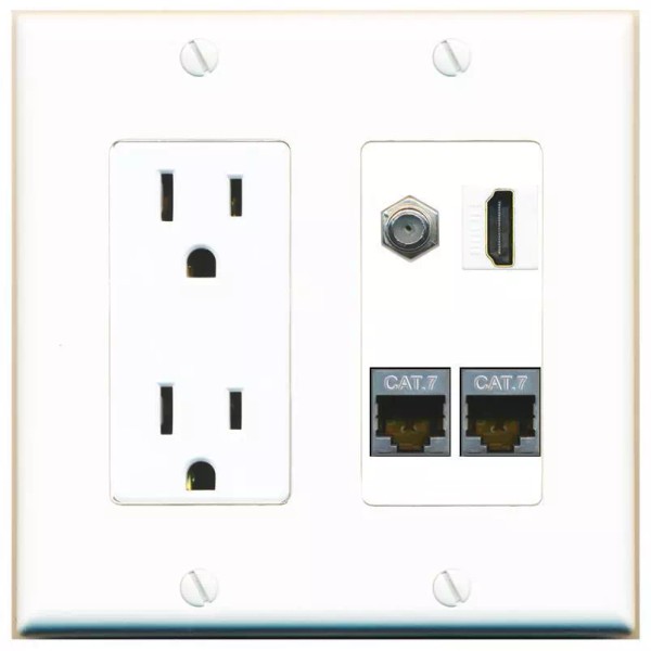 Wall Plate City 2 CAT7 COAX HD Port Wall Plate w/Power Outlet White