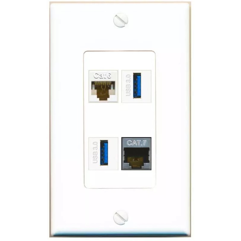 Wall Plate City [4 Ports] CAT6 CAT7 2 USB-3 Wall Plate DecorZ White