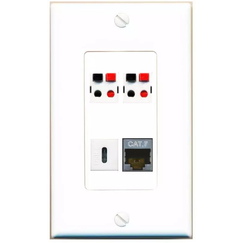 Wall Plate City [4 Ports] CAT7 2 SPEAKER USBC Wall Plate DecorZ White