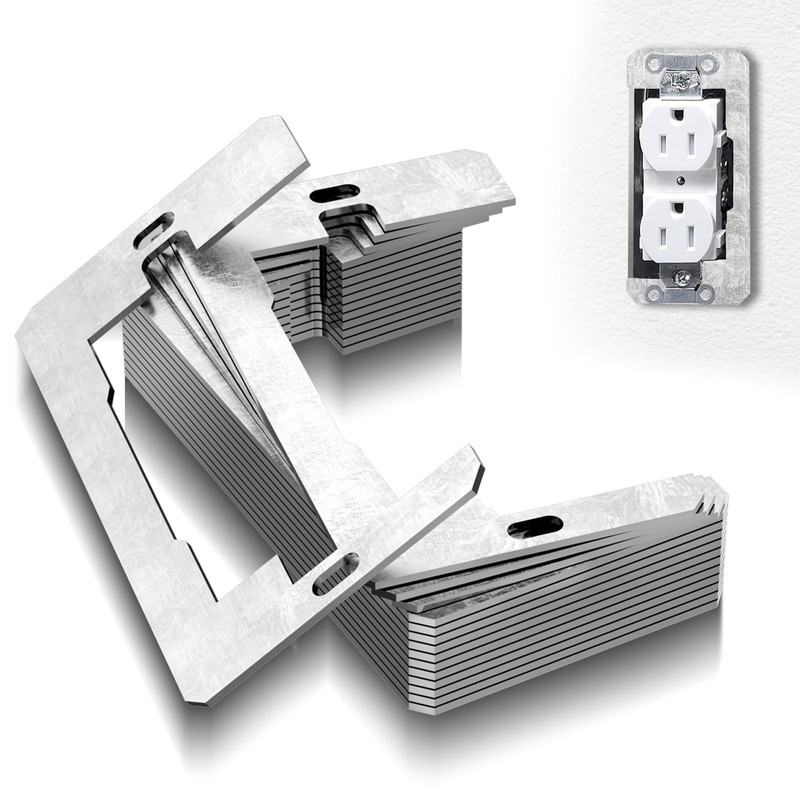 - [Perfect Size]: Each pack contains 15 metal self-leveling outlet spacer shims, each measuring 4.25 x 2.28 x 0.047 inches. They are 50% thicker than the others, can withstand greater pressure, and fit any standard single-gang device.