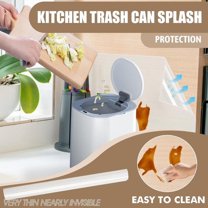 - Wall Covering Backsplash Protector: This plastic wall protector can effectively prevent moisture and large-scale wall corrosion when used at the back of a washing machine, prevent scratches behind doors,chairs, furniture,and prevent dirt near trash cans and pet bowls. It is heat-resistant, waterproof, easy to clean, and can also be used back splash protector for kitchen wall. It is a multi-purpose transparent protective film