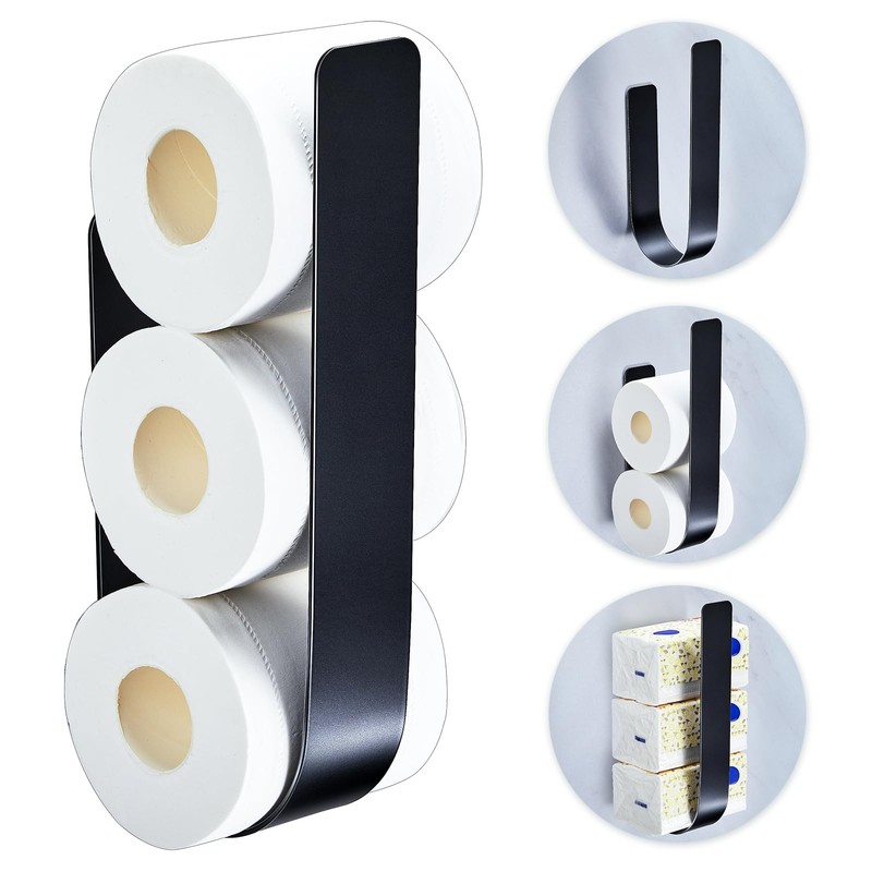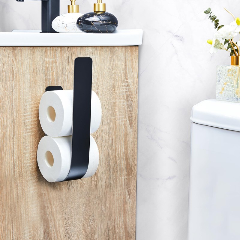 TOILET PAPER STORAGE WITHOUT DRILLING - Easily attaches to smooth walls and adheres securely.