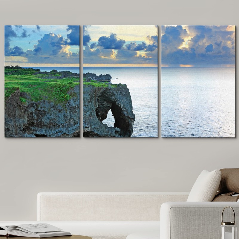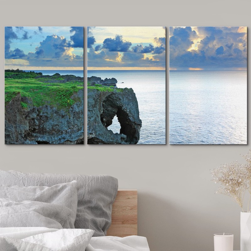 wall26 - 3 Piece Canvas Wall Art - Sunset with Rock, Okinawa, Manzamo - Modern Home Art Stretched and Framed Ready to Hang - 24"x36"x3 Panels