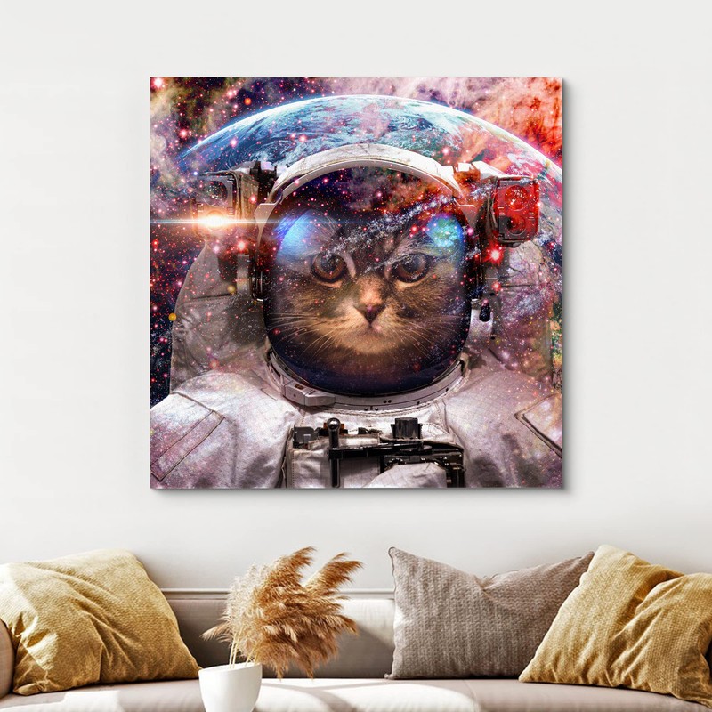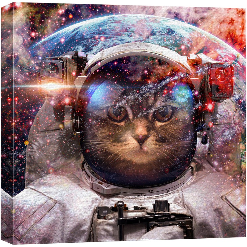 wall26 Canvas Print Wall Art Cat Kitten Astronaut Cosmic Galaxy Space Suit Astronomy & Space Fantasy & Sci-Fi Digital Art Pop Art Decorative Futuristic Cool for Living Room, Bedroom, Office - 24"x24"