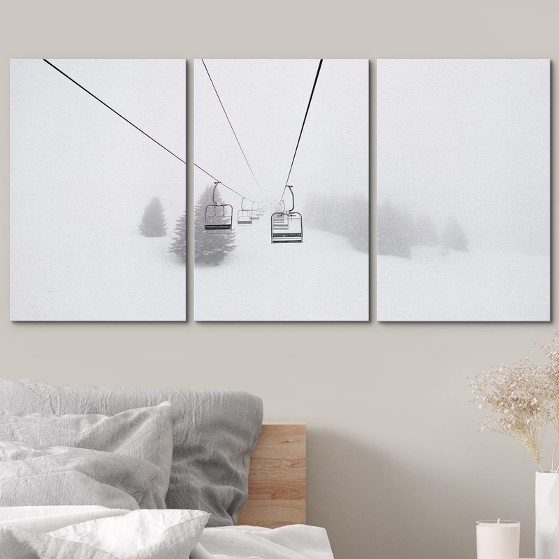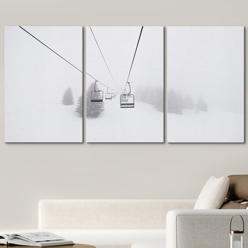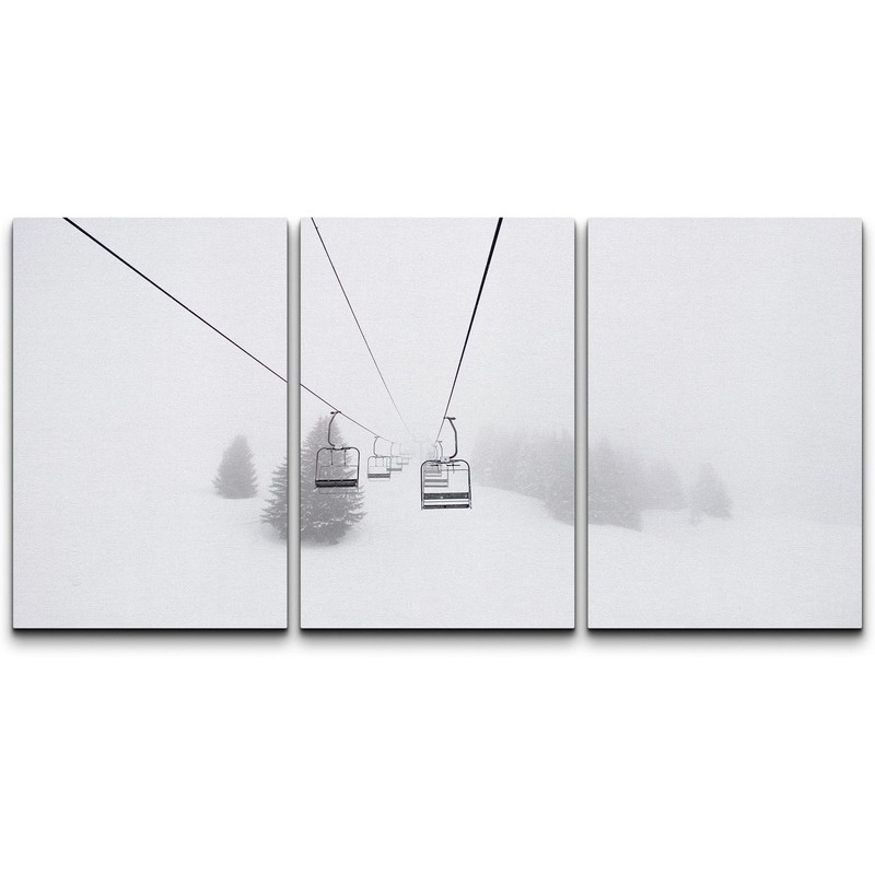 wall26 Canvas Print Wall Art Set Ski Lift on Snowy Winter Mountain Nature Wilderness Photography Realism Rustic Scenic Multicolor for Living Room, Bedroom, Office - 24"x36"x3 Panels