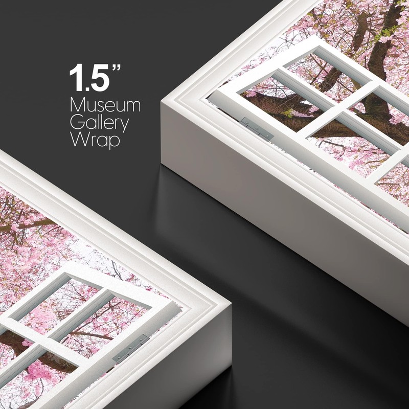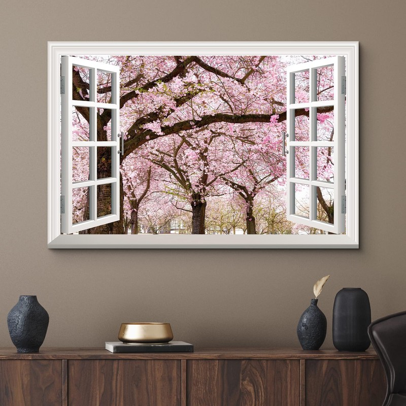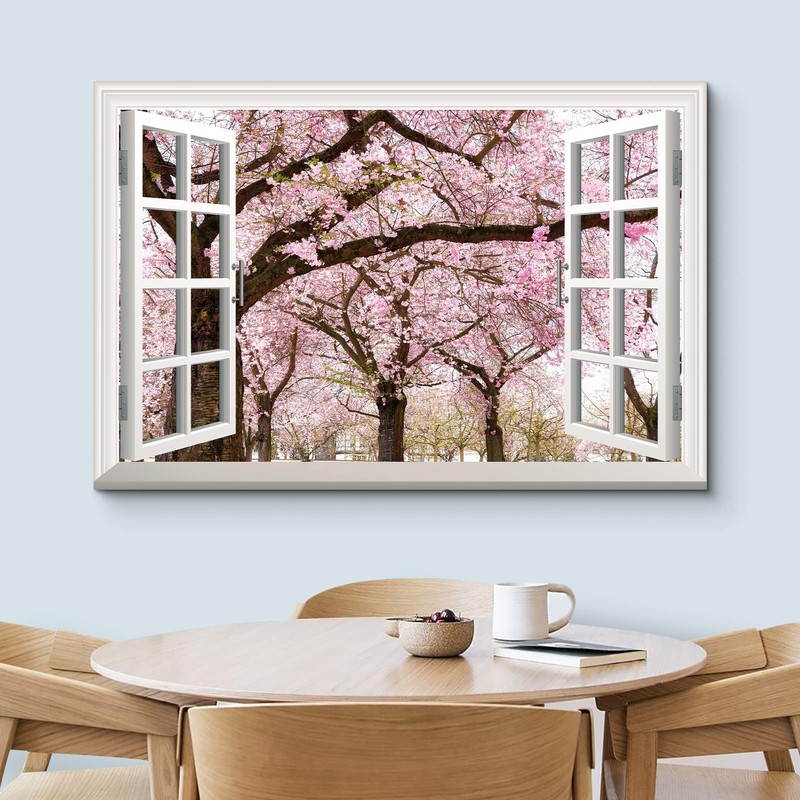 wall26 Canvas Print Wall Art Window View Cherry Blossoms in Spring Nature Wilderness Photography Modern Art Rustic Scenic Colorful Ultra for Living Room, Bedroom, Office - 32"x48"