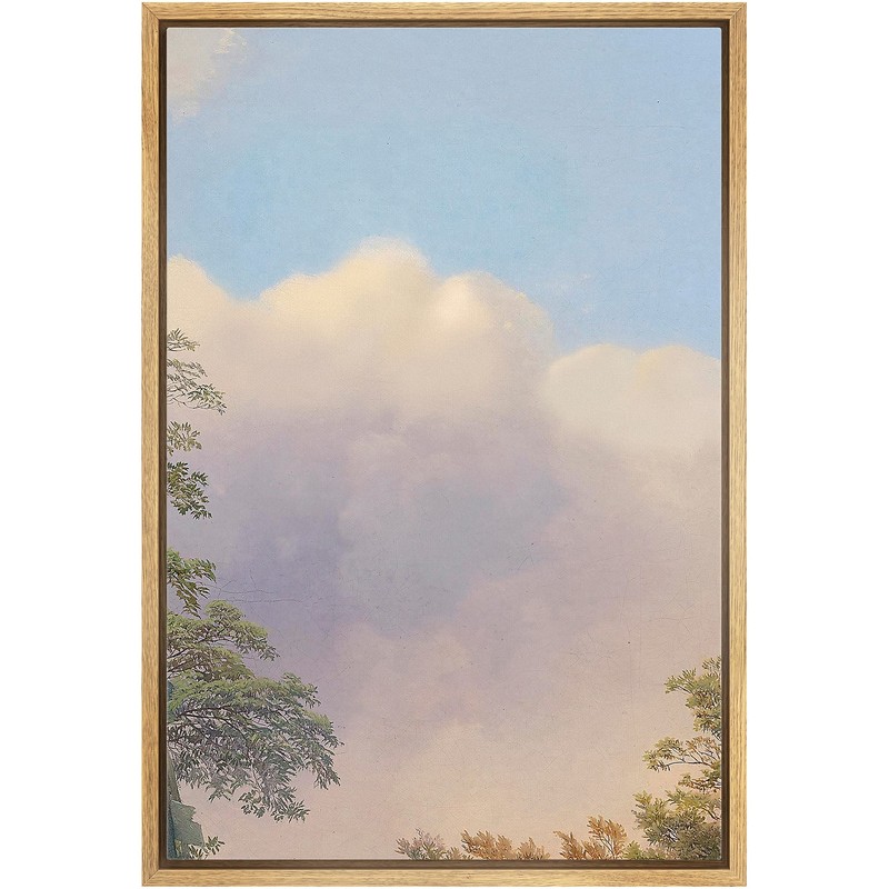 wall26 Framed Canvas Print Wall Art Cloudy Sky Landscape Pastel Green Trees Nature Wilderness Modern Art Realism Decorative Minimal Calm/Zen Rustic for Living Room, Bedroom, Office - 16"x24" Natural
