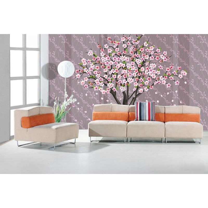 wall26 - Pretty Cherry Blossom Tree on a Striped and Floral Patterned Background - Wall Mural, Removable Sticker, Home Decor - 100x144 inches