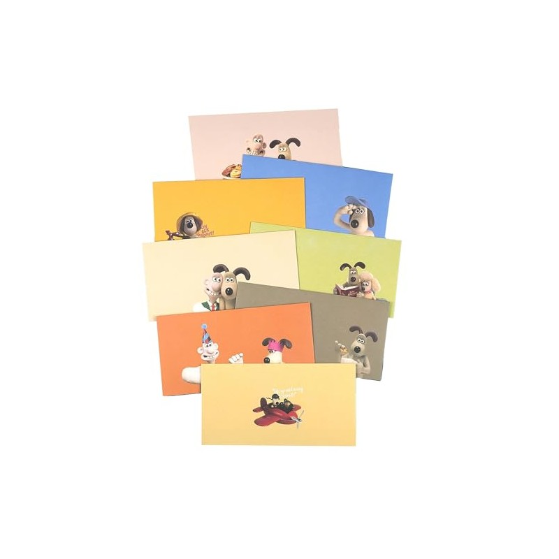 - Licensed Wallace & Gromit product from Aardman Material: Paper Set includes 8 designs of envelopes and 4 sheets of stickers Envelopes and stickers can be used for various purposes Comes in a Wallace & Gromit box for easy storage and organization