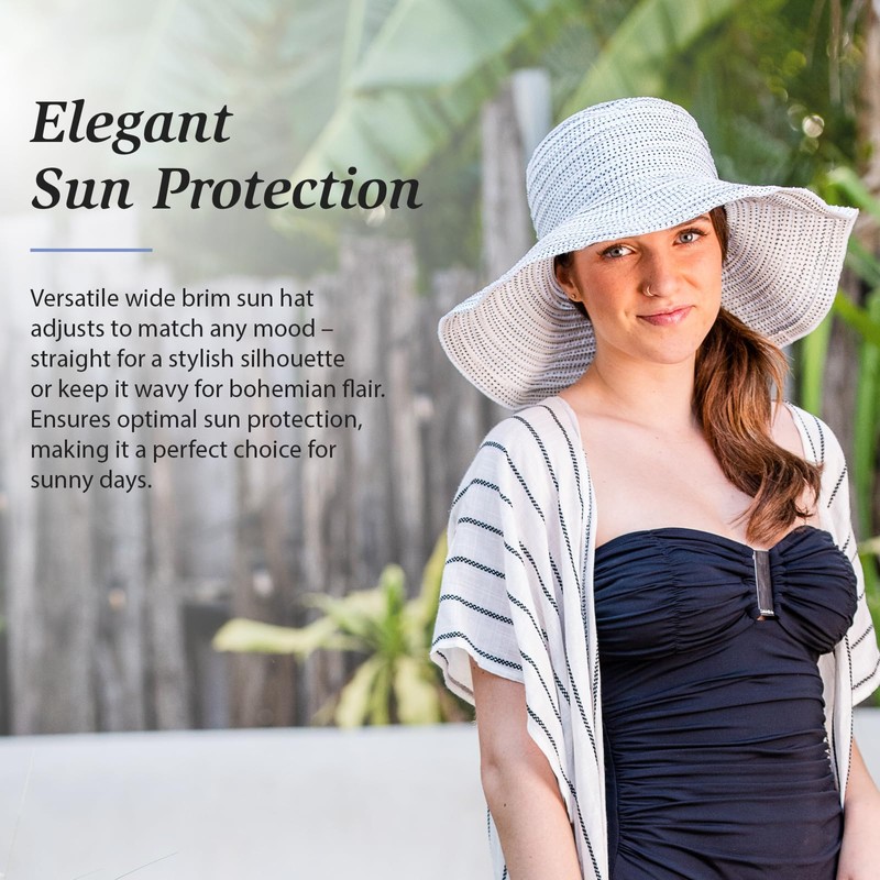 - STYLISH WIDE BRIM: Designed for women with a crown size of M measuring 22 7/8” (58cm). The 4½-inch brim offers generous shade, safeguarding your face, neck, and shoulders from the sun's rays, making it a perfect companion for outdoor activities. Whether you're reading by the pool, strolling along the beach, exploring exotic destinations, or simply enjoying a sunny day outdoors, this sun hat will keep you protected.