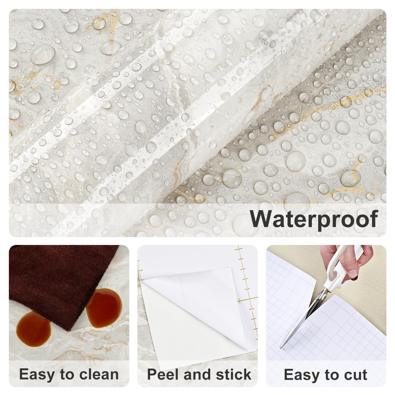 - Marble Contact Paper(Material)Our beige gold wallpaper is crafted from premium vinyl material, boasting tear-resistant, waterproof, and oil-resistant properties that effectively repel stains. Maintenance is a breeze,simply wipe with a damp towel for effortless cleaning and long lasting stunning aesthetics. Countertop contact paper will not damage your wall and also very tolerant for tenants