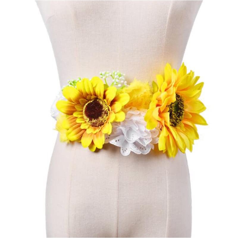 Wallerg Sunflower Bridal Wedding Dress Belt Set for Women, Yellow, (YC-Bride Belt-30)