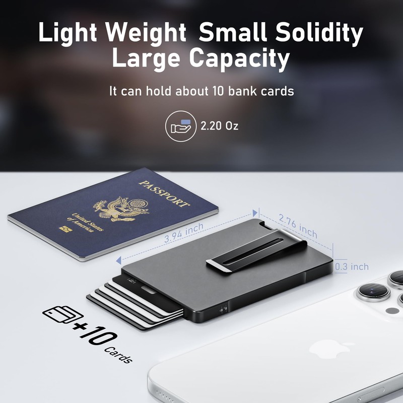 - [Rfid Wallet for Men] Our slim aluminum wallet is equipped with NFC/RFID blocking protection, providing maximum RFID protection for your debit and credit cards and preventing thieves from stealing your information.