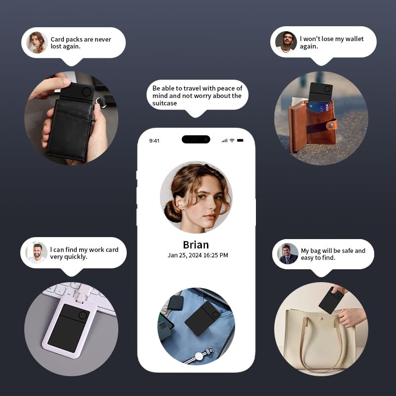 • Ring-to-Find Function – Within Bluetooth Range >>> This bluetooth tracker card helps you find lost items within range by triggering a loud 80dB sound from your phone. It’s a practical smart wallet finder when you’ve misplaced your wallet nearby—but does not provide automatic separation alerts.