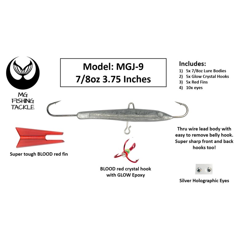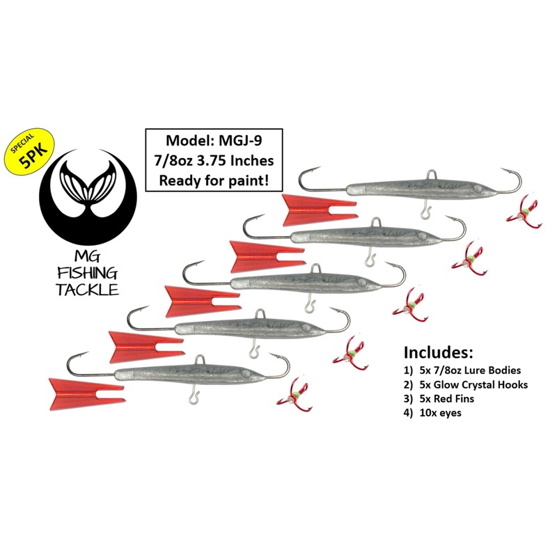 - 5-Pack Versatile Lure: This jig is designed for jigging and ripping techniques to attract walleye, bass, crappie, pike, and perch in freshwater or ice fishing environments. Kit comes with everything, lure body, hooks, eyes and tail that you will glue into place after you paint the lures.