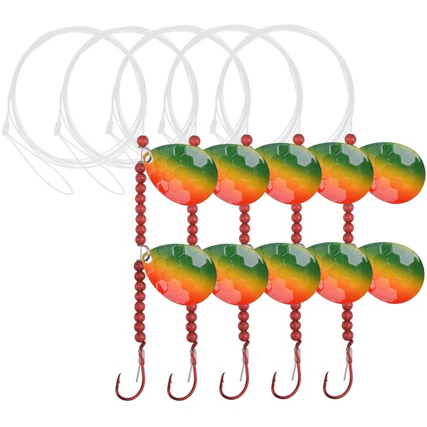 Walleye Spinner Rig Kit, 5/10Pack Crawler Harness Walleye Walleye Fishing Lure Rigs Live Bait Rigs Colorado Spinner Blades Beads Octopus Hooks Fishing Bait Rig for Walleye Trout Salmon