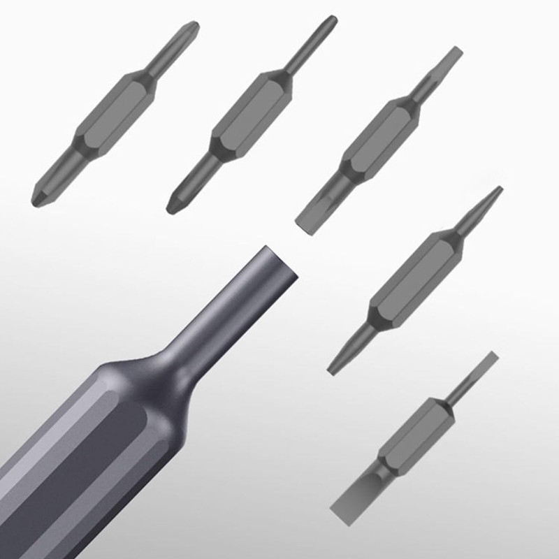 • HIDDEN STORAGE DESIGN: The bits are magnetically stored in a concealed compartment within the screwdriver handle. This unique design not only makes it convenient to access the desired bits but also prevents them from getting misplaced.