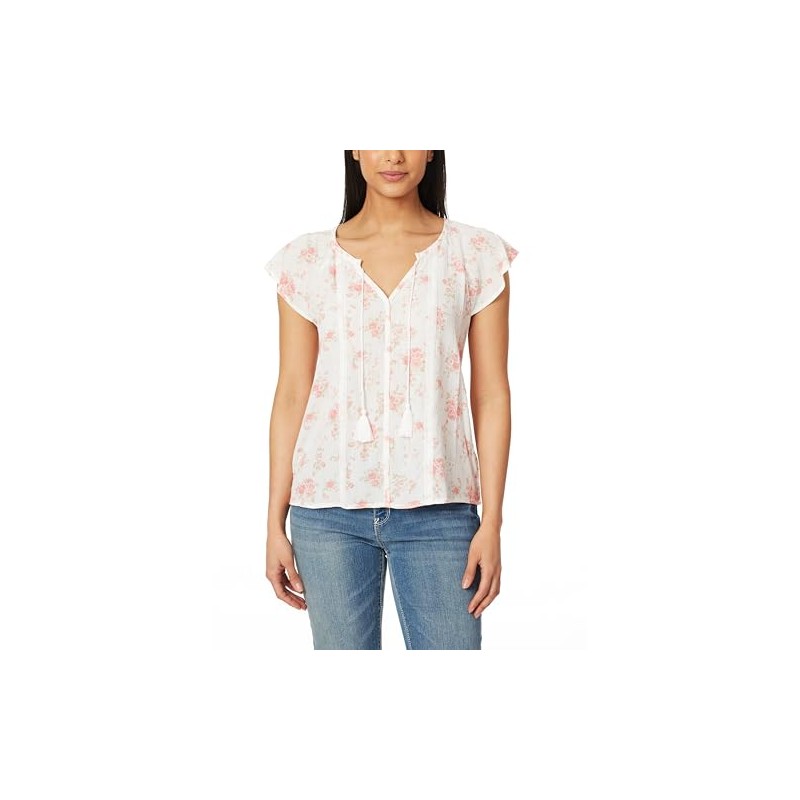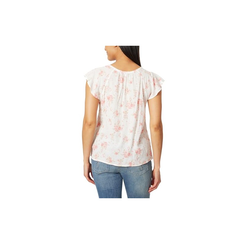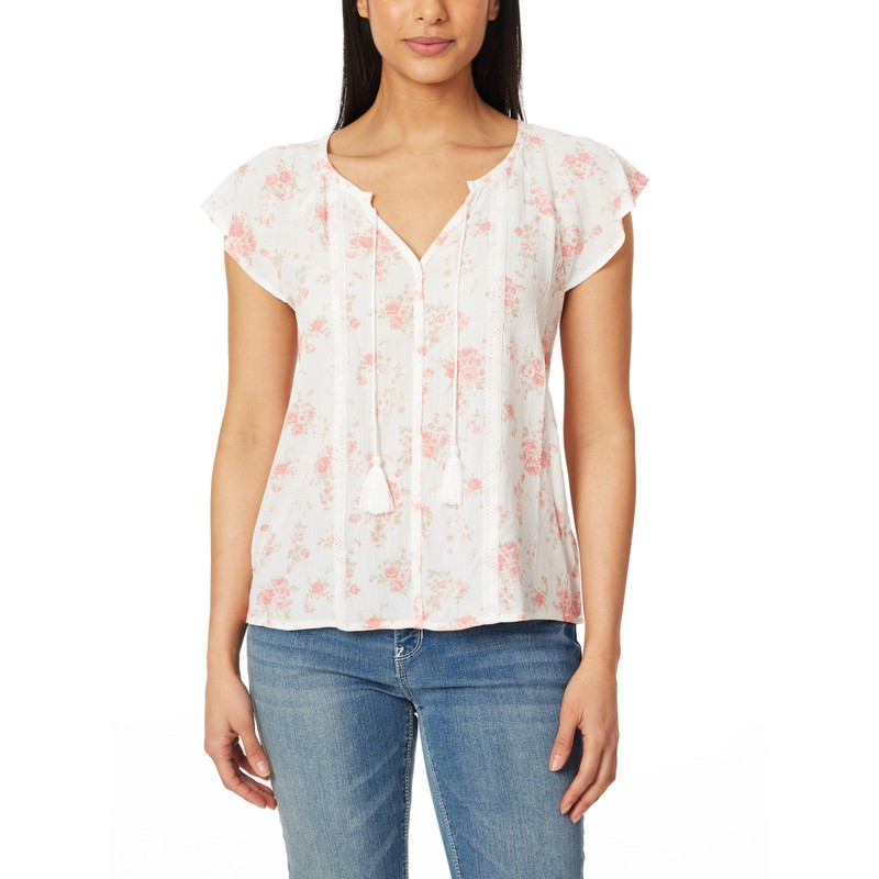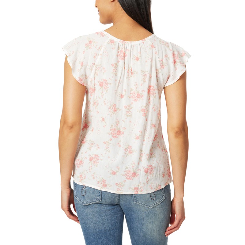 WallFlower Women's Clara Flutter Sleeve Rayon Gauze Peasant Top, Snow White Floral