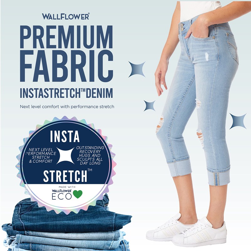 - QUALITY MATTERS: WallFlower's premium feel, Insta Stretch performance denim. Our stretchiest, never-loses-its-shape denim with endless holding power, and outstanding recovery.