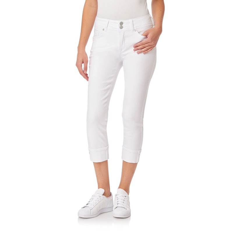 WallFlower Women's Size Luscious Curvy 23.5'' Crop Mid-Rise Insta Stretch Juniors (Standard, White, 22 Plus