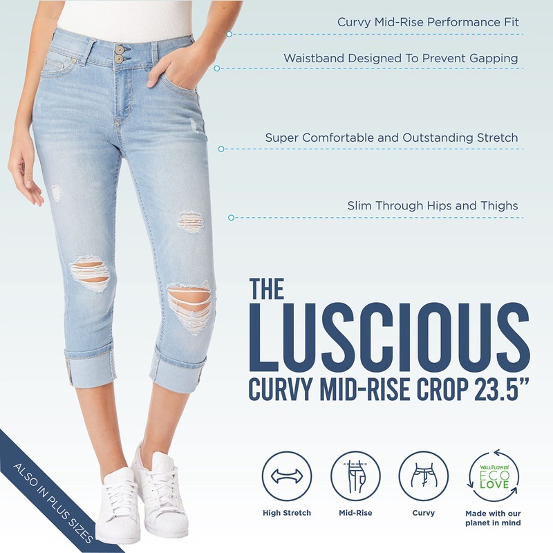 - PERFECT FIT: Crop it like it's hot! Stay cool in our mid rise, curve enhancing, cropped jeans. Contoured waist (no more waist gap!), roomier in the hips and thighs and 5-pocket styling. We are size inclusive, which means – Made for Every Body – Great jeans for all women. Period.