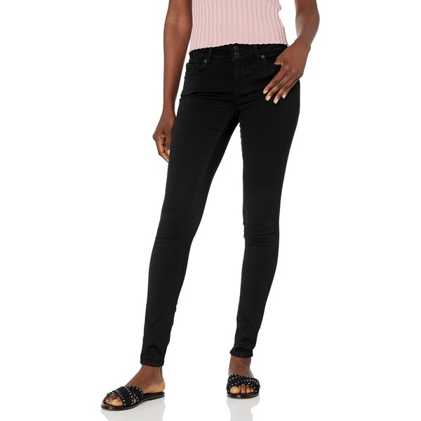 WallFlower Women's Ultra Skinny Mid-Rise Insta Soft Juniors Jeans (Standard and Plus), Black, 13