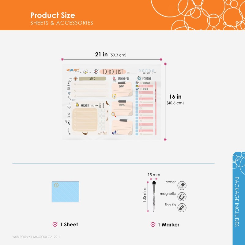 - ORGANIZE YOUR THOUGHTS & LIFE: The WallJOY dry erase to-do list whiteboard helps manage your daily schedule, priorities, and tasks with sections for top 3 goals, routine checklists, to-do lists, and reminders. Perfect for families, adults, and kids. Includes a black marker.