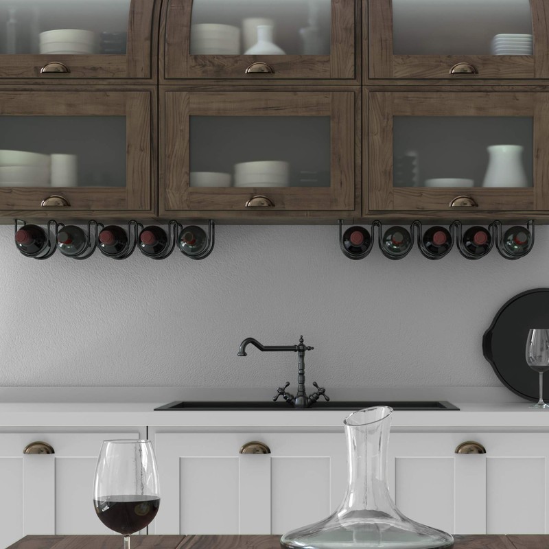 - Bring the Class: This durable metal wine rack is quite a space-saver, mount it under your kitchen cabinets or on your walls and clear the mess sitting on your countertop. You will receive 2 sets of sturdy metal rack that holds 5 bottles of wine or other liquor with the option of hanging according to your need.