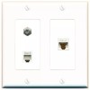 Wallplate City 1 Port CAT6 Ethernet COAX PHONE Wall Plate-2 Gang White