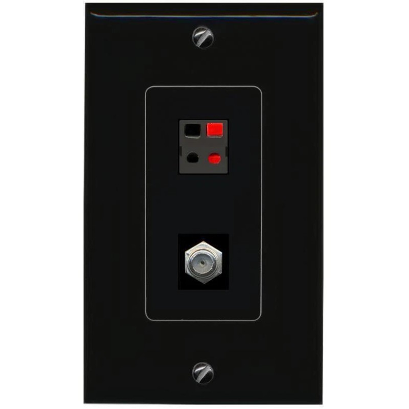 Wallplate City 2 Port Black Decorative Jack Passthrough Keystone COAX SPEAKER Wall Plate