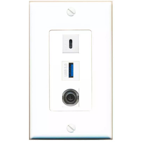 Wallplate City 3 Port 1 Gang Jack Face Cover Cable Plastic 3-5MM USB-3 USBC Wall Plate