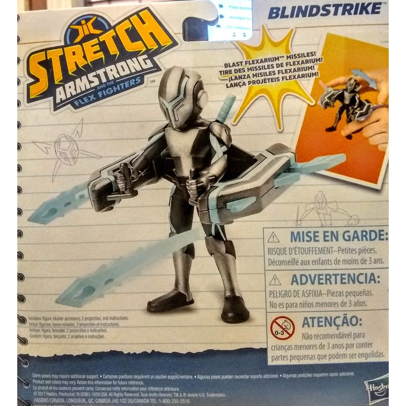 BLINDSTRIKE - STRETCH ARMSTRONG AND THE FLEX FIGHTERS Includes figure, blaster accessory. 2 projectiles, and instructions.