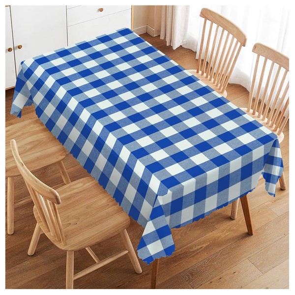 Walmsco Tablecloth Blue White Plaid Decor For Dining Room Kitchen Rectangular Table Cover 132 * 178cm